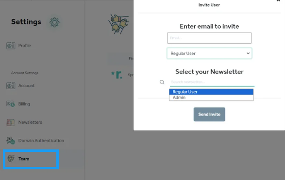In order to give others access to your Smart Newsletter dashboard, you can add them as a team member to your account. To do this, you will need to go to the Team page under Settings and Invite User. You will see whether their invitation was accepted in the "Status" column of this page.