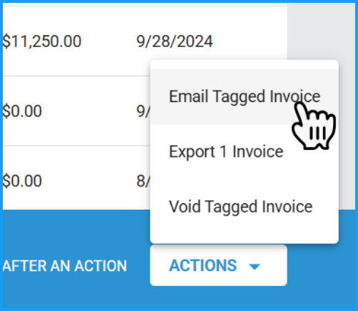 Tag invoice(s) > Select Actions > Select Email Tagged Invoice |